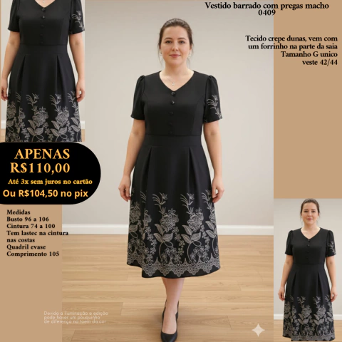 Vestido, Tecido crepe dunas, tem um forrinho na parte da saia , tamanho G veste 42/44